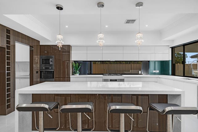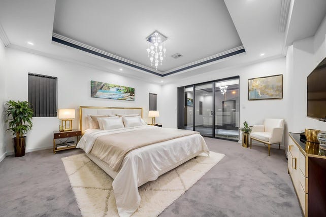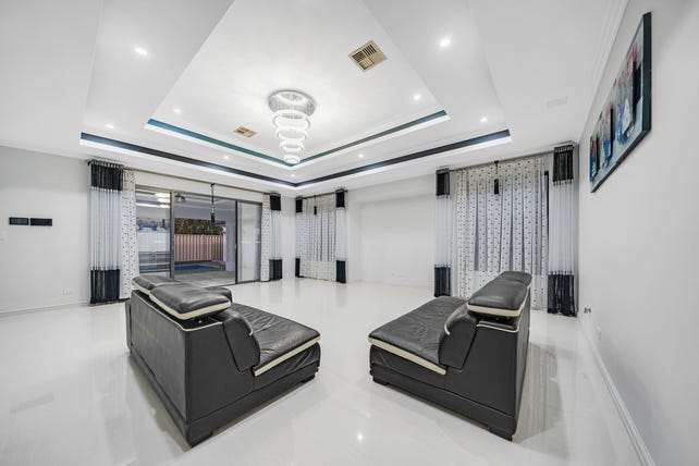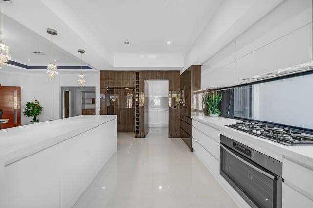 The heart of the home is an open-plan living and dining area, connected to a gourmet kitchen. Featuring stone benchtops, extensive cabinetry, premium appliances, and a full scullery, this is the ultimate culinary space. Adorned with coffered ceilings and exemplary chandeliers, the main living space opens outside through glass sliding doors, opening onto an expansive alfresco area and detached gazebo overlooking the resort-style pool!