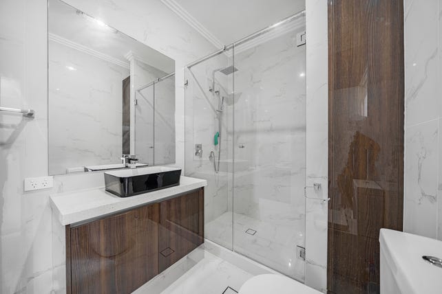 The main master suite at the rear is a private sanctuary with direct pool access, recessed ceilings, a designer chandelier, and an ensuite complete with floor-to-ceiling tiling and dual vanities. Bathrooms are appointed in full-height porcelain tiles with elegant finishes throughout. Every detail has been considered to offer a lifestyle defined by comfort, prestige, and enduring beauty.